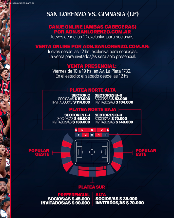 - Los hinchas deben registrarse en la plataforma ADN San Lorenzo para acceder al canje de populares y la compra de plateas.