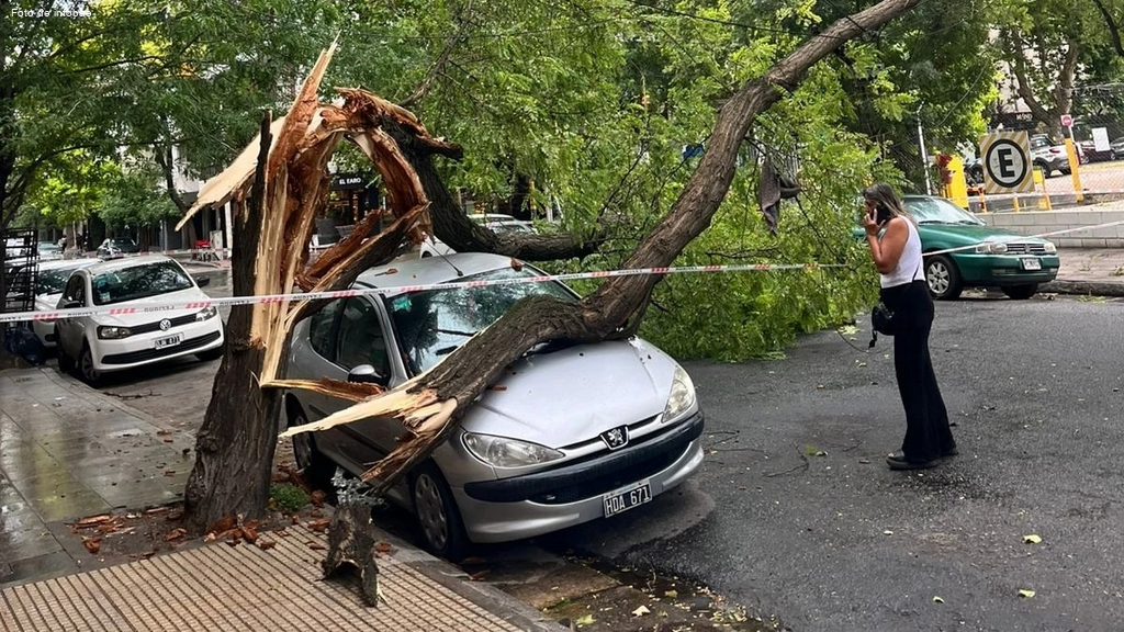 El temporal provocó caídas de árboles y postes de luz, lo que generó interrupciones en el tránsito y daños en vehículos. En particular, un árbol de gran tamaño cayó sobre la calle 25 de Mayo, impactando una combi y provocando cortes en la circulación, pero sin heridos graves. Además, en la zona de La Perla, la rotura de paneles de vidrio en edificios y viviendas representó un peligro para los residentes, que tuvieron que protegerse en el interior de sus casas.