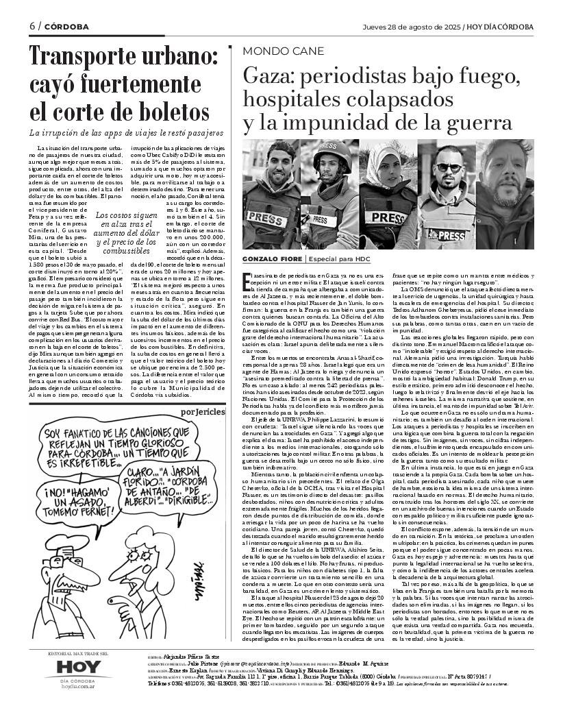 Esta es la Tapa del Día miércoles 27 de agosto del 2025 de nuestro Diario en su edición impresa.