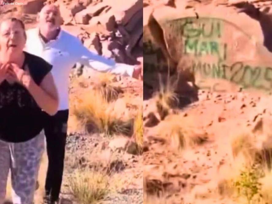 El hecho ocurrió sobre la Ruta Nacional 7, en un sector de alta montaña que conecta Mendoza con Chile. Las imágenes, tomadas por un conductor desde su vehículo, muestran a los turistas pintando con aerosol sus nombres en las piedras del entorno natural. Los nombres “Stela, Grachu, Gui, Mari y Moni” fueron uno de los principales daños visuales en este patrimonio natural.